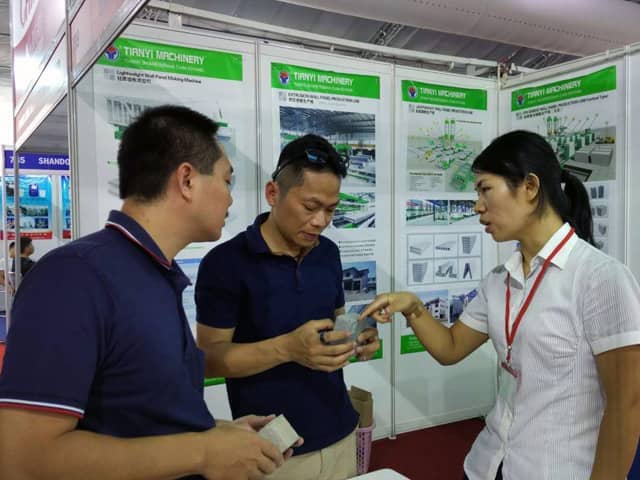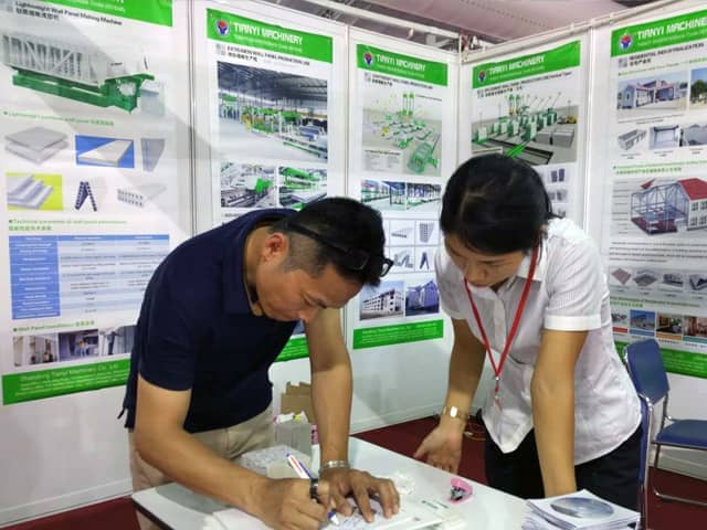 越南是亞洲經濟發(fā)展速度的國家之一。近年來,越南正加大對基礎設施建設和主要城市居民住宅的改造力度,綠色建筑建材裝備缺口巨大,為適應市場需求,天意機械攜綠色建材設備參展了此次展會。展會期間,外貿銷售部李經理,認真對待每位來訪的客戶,詳細向其介紹天意機械專利產品輕質墻板生產線,復合墻板生產線,保溫裝飾一體化板生產線等產品的優(yōu)勢,以及設備在東南亞地區(qū)建筑建材市場的影響,展會現場就有多數客戶,初步簽訂了輕質墻板生產線、復合墻板生產線加工生產訂單。