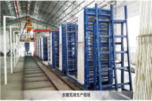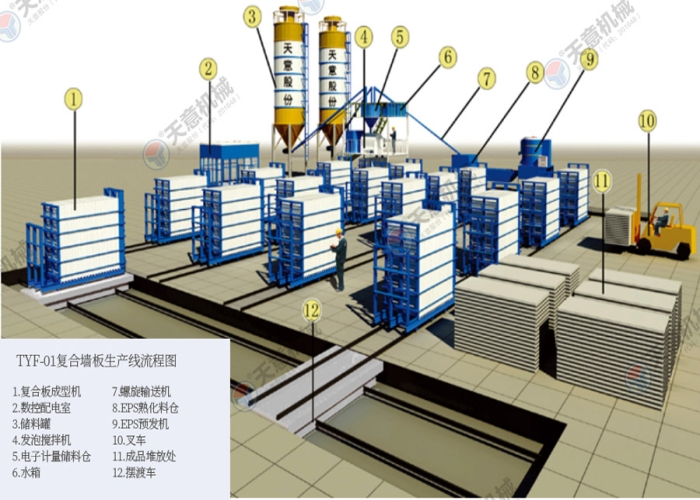 TYF-01型立式復合墻板生產(chǎn)線,設備占地面積小,產(chǎn)品一次成型,產(chǎn)量高。主機配有自動行走系統(tǒng),設備運轉(zhuǎn)更簡單快捷,大型固定式攪拌設備,攪拌料漿更均勻,澆注效率更高。
